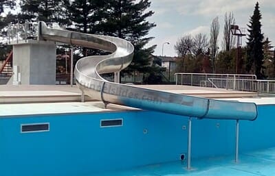 Custom-made stainless-steel half-tube and tunnel water slides for public sector (public swiming pools, water amusement parks). (see more)