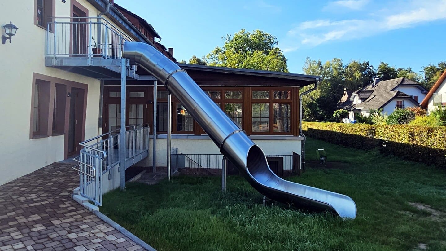 - A stainless-steel evacuation slide is a great alternative to a standard fire staircase.